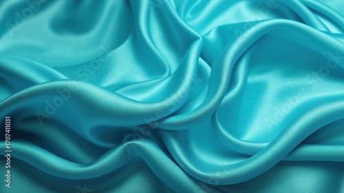 Fototapeta premium "Turquoise Blue Silk Fabric Texture – Smooth Flowing Satin Cloth Background"