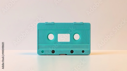 © kelu, Obraz premium Turquoise cassette tape against white background