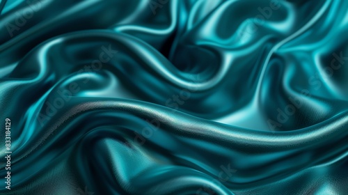 Obraz premium Turquoise 3d render of dark and turquoise silk displaying white iridescent holographic foil in style of turquoise abstract background