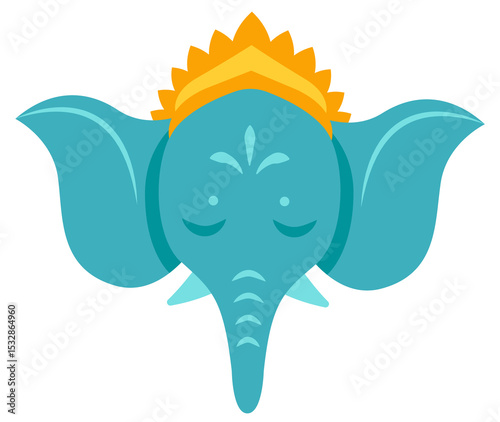 © vectorfusionart, Naklejka premium Turquoise elephant head showing flat vector design with crown motif, transparent background