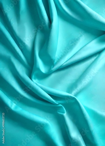 © Bualong, Obraz premium Turquoise fabric, with a crumpled and flowing texture, is displayed in the