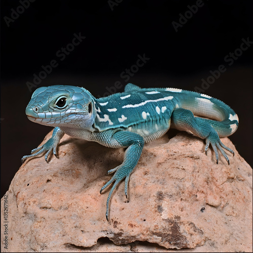 © Pic, Obraz premium Turquoise lizard perched on rock, studio shot, reptile detail, exotic pet