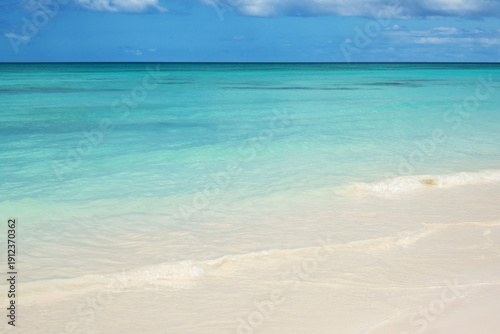 Fototapeta premium Turquoise ocean wave on clean sandy beach