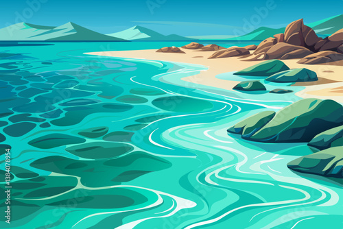 Obraz premium turquoise ocean with sandbanks and sunlight reflections, tropical sea wallpaper