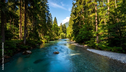 Fototapeta premium Turquoise river flowing through a lush forest