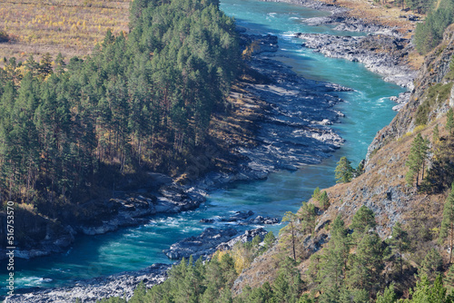 Fototapeta premium Turquoise river Katun in the mountains.