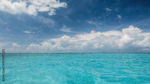 Obraz premium Turquoise sea gentle waves beneath dramatic cloudy sky.