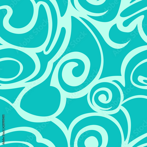 Obraz premium turquoise seamless pattern of waves and abstract shapes for printing on fabric and wrapping paper.