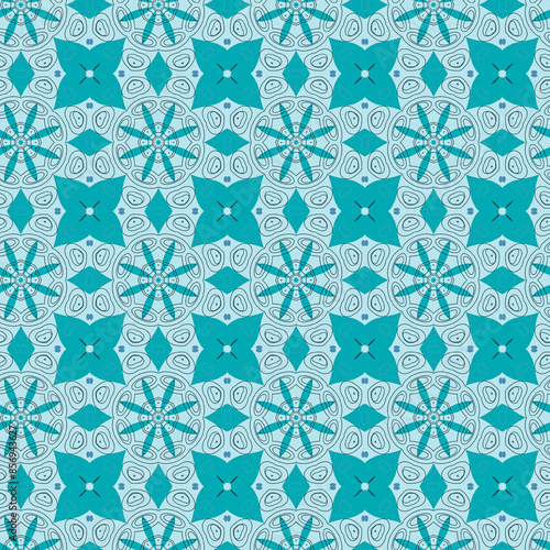 © Oendry, Fototapeta premium turquoise, seamless pattern with flowers jpg