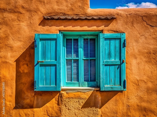 © chaowalit, Obraz premium Turquoise Shutters Santa Fe Canyon Road AI Photo