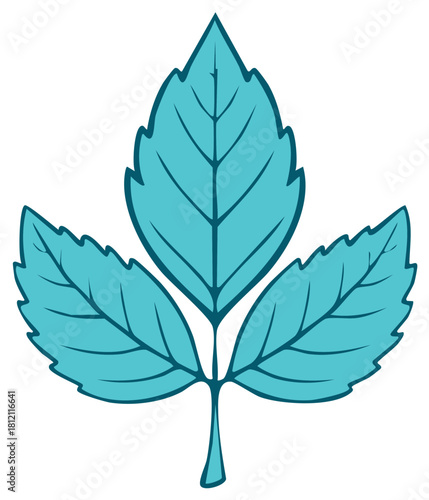 Obraz premium Turquoise Three Leaf Plant Botanical Illustration