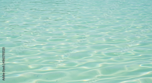 © Digital, Obraz premium Turquoise Water Surface Texture in Shallow Lagoon Creates Abstract Pattern with Ripples and Sunlight Reflections for Serene and Calm Background