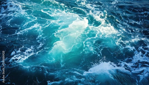 Fototapeta premium Turquoise waves crashing in the ocean under bright sunlight during daytime