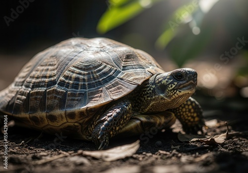 Fototapeta premium Turtle basking in natural sunlight