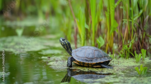 © creativeideh, Fototapeta premium Turtle basking in the sun