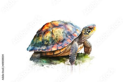 © Fotograf, Fototapeta premium turtle drawn with colored watercolors isolated on a white background. Generated by AI.
