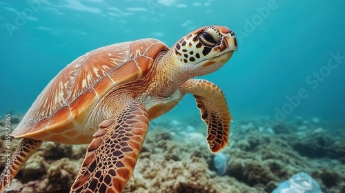 © Aniwat, Obraz premium Turtle Gliding Gently Through the Ocean Waters