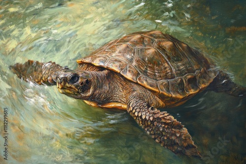 Obraz premium Turtle gliding gracefully through serene water in a natural habitat during...