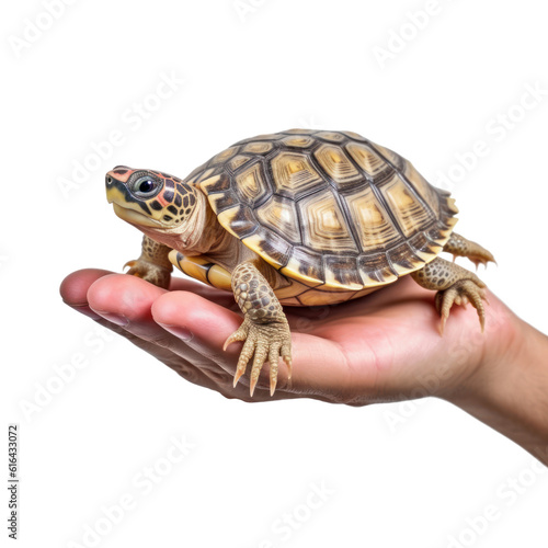 © Papugrat, Obraz premium turtle in hand isolated on transparent background cutout