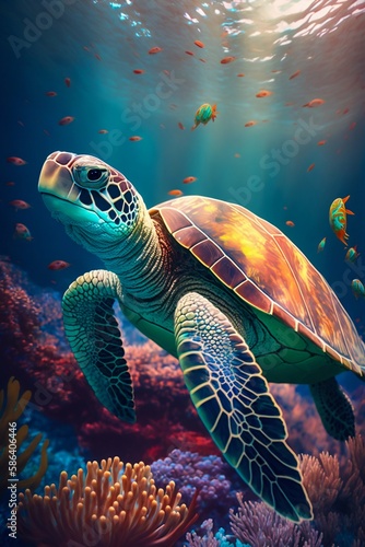© NovaVision, Obraz premium Turtle in ocean underwater. Generative AI