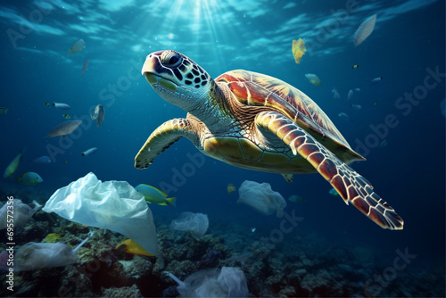 Obraz premium Turtle in plastic Garbage