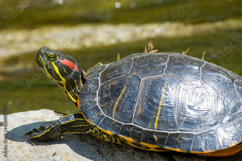 © osmanozeroz, Obraz premium Turtle in the park. Close-up turtle. Animals in the botanical park. Little cute turtle near the lake.
