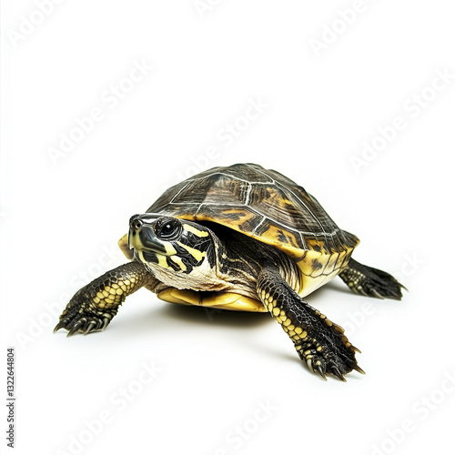 © Thanthara, Obraz premium Turtle isolated on white background, showcasing its detailed shell