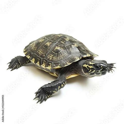 © Thanthara, Obraz premium Turtle isolated on white background, showcasing its detailed shell