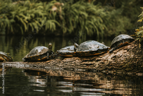 © Jenny, Fototapeta premium turtle on a log in the swamp