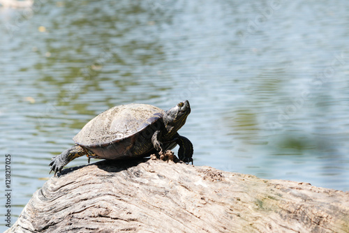 © nopwaratch, Obraz premium Turtle on a log, living naturally in Thailand