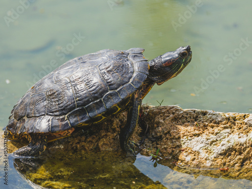 © enginakyurt, Obraz premium turtle on a rock in the pond