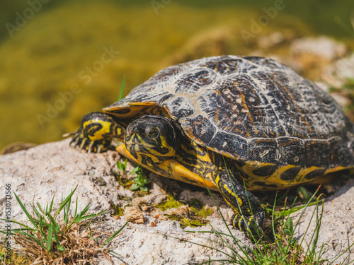 © enginakyurt, Obraz premium turtle on a rock in the pond