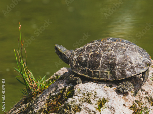 © enginakyurt, Obraz premium turtle on a rock in the pond