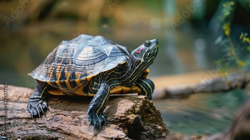 © Robin, Obraz premium Turtle on alog