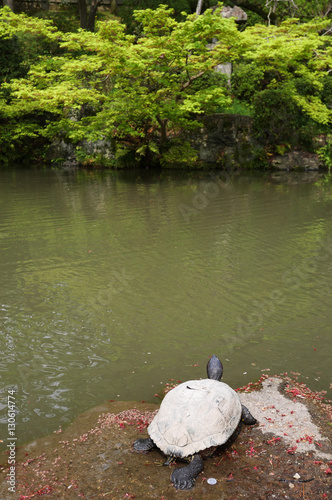 © Chibiyaya, Obraz premium Turtle on rock with pond