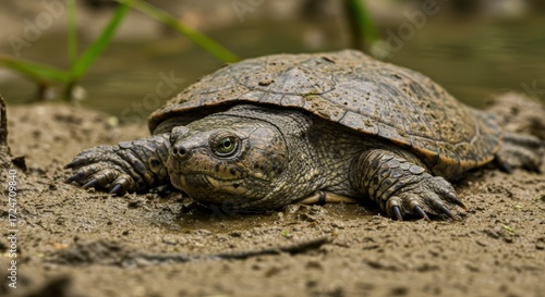 © adam, Fototapeta premium Turtle on sandy ground