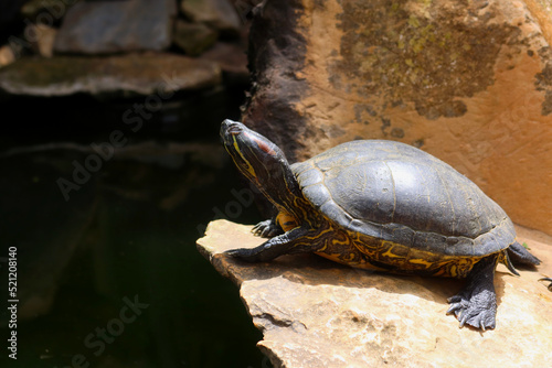 Obraz premium Turtle on the edge of a cliff. A turtle sitting on a rock
