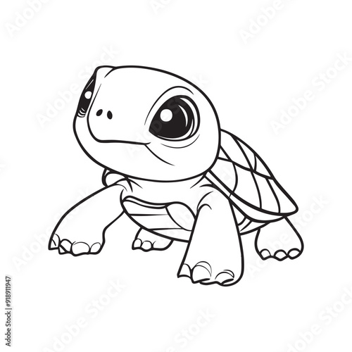 © Shineoxstock, Fototapeta premium Turtle Outline Design, Turtle Clipart, Cute Turtle illustration in black and white