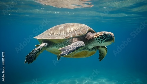 © Elie, Obraz premium turtle swimming in the ocean background create with ai