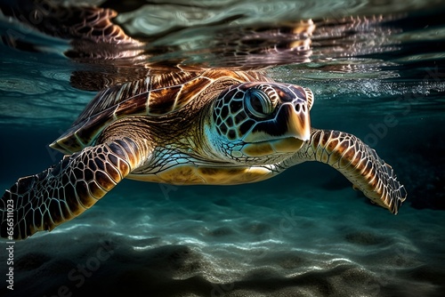 © Joyful Nymph, Fototapeta premium turtle swimming in water