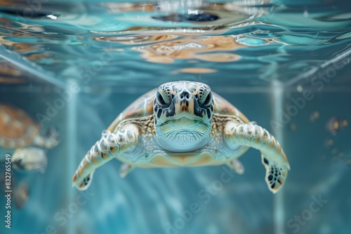 Fototapeta premium Turtle swimming with head above water