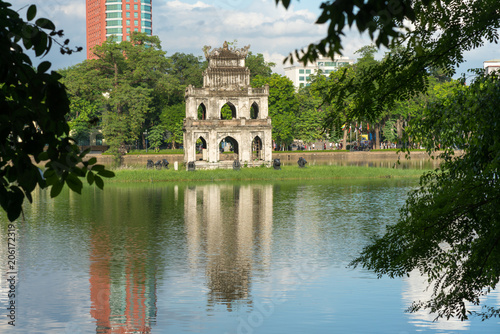 © Hanoi Photography, Naklejka premium Turtle Tower (Thap Rua) in Hoan Kiem lake (Sword lake, Ho Guom) in Hanoi, Vietnam.