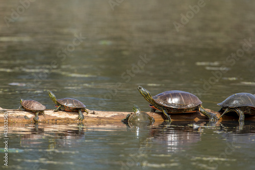 © Gregory Johnston, Obraz premium Turtle trying to get up on a log with others.