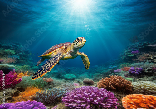 Obraz premium Turtle underwater world corals for 3d floor
