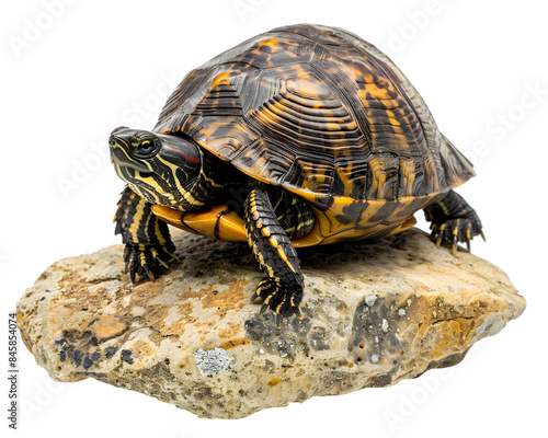 © PNG River Gfx, Obraz premium Turtle walking on a rock on transparent background