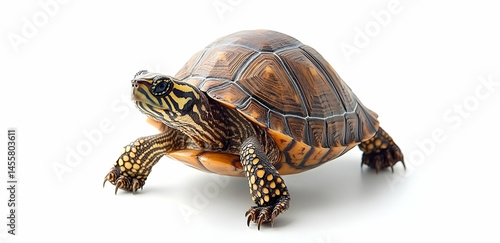 © Deny, Fototapeta premium Turtle Walking on White Background Animal Photography