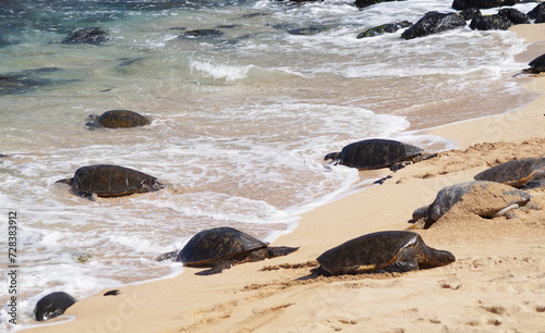 © Eduardo, Fototapeta premium Turtle watching at Hookipa Beach, Hana Highway, Island of Maui, Hawaii, United States