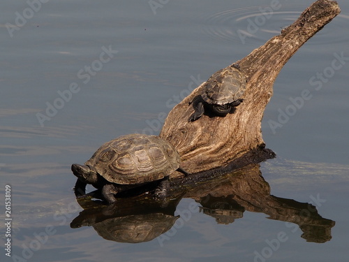 © svenja, Fototapeta premium Turtles on a piece of wood