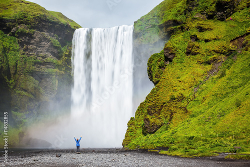 © Kushnirov Avraham, Fototapeta premium Turysta zszokowany wodospad piękna