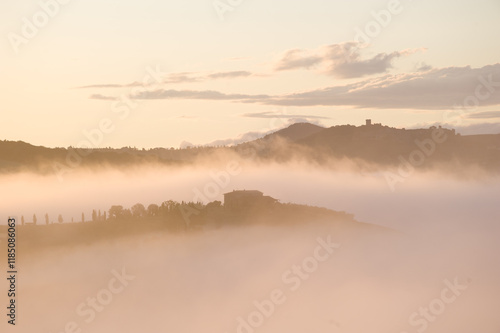 Fototapeta premium Tuscan Hills and Fog at Sunrise in Italy